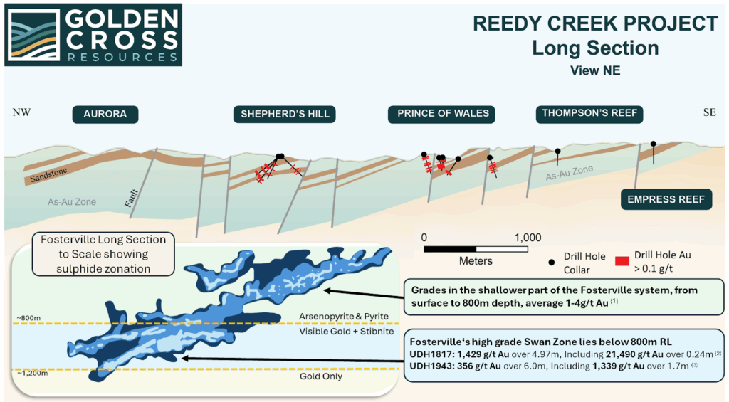 Vancouver, BC – December 15, 2025 – Golden Cross Resources (“Golden Cross” or the “Company”) (TSXV: AUX; OTCQB: ZCRMF; FSE: ZMLO) is pleased to provide the following update on its ongoing exploration at the Reedy Creek Project, Victoria, Australia, where drilling, mapping, and structural analysis have confirmed a large orogenic gold system extending across multiple targets.